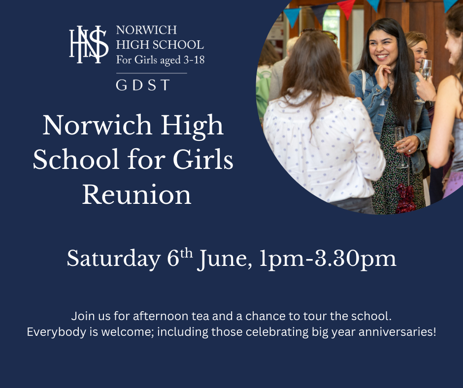 06 June 2026 £20.00 Book nowWe are delighted to welcome Norwich High School alumnae back to school on Saturday 6th June 1pm - 3.30pm for an afternoon of tea, conversation, and tours.Doors open at 1pm for a buffet lunch of sandwi… Click here for more